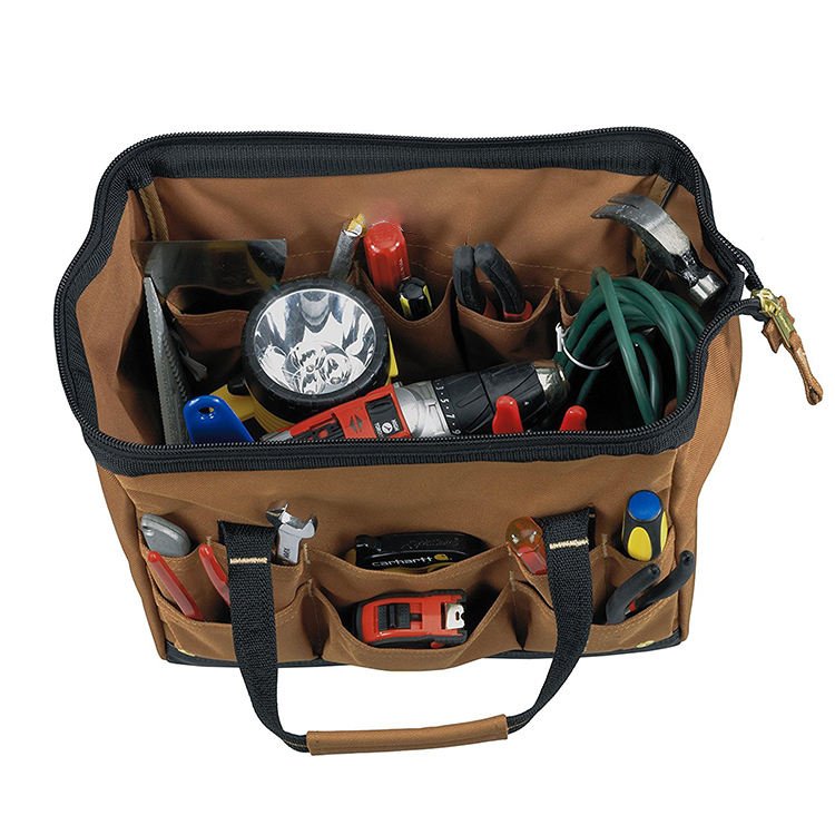9 internal and 7 external; ideal for home, workshop, or job site. Provides space for storing hand tools and other small to medium items; 2 smooth zippers for easy opening / closing .