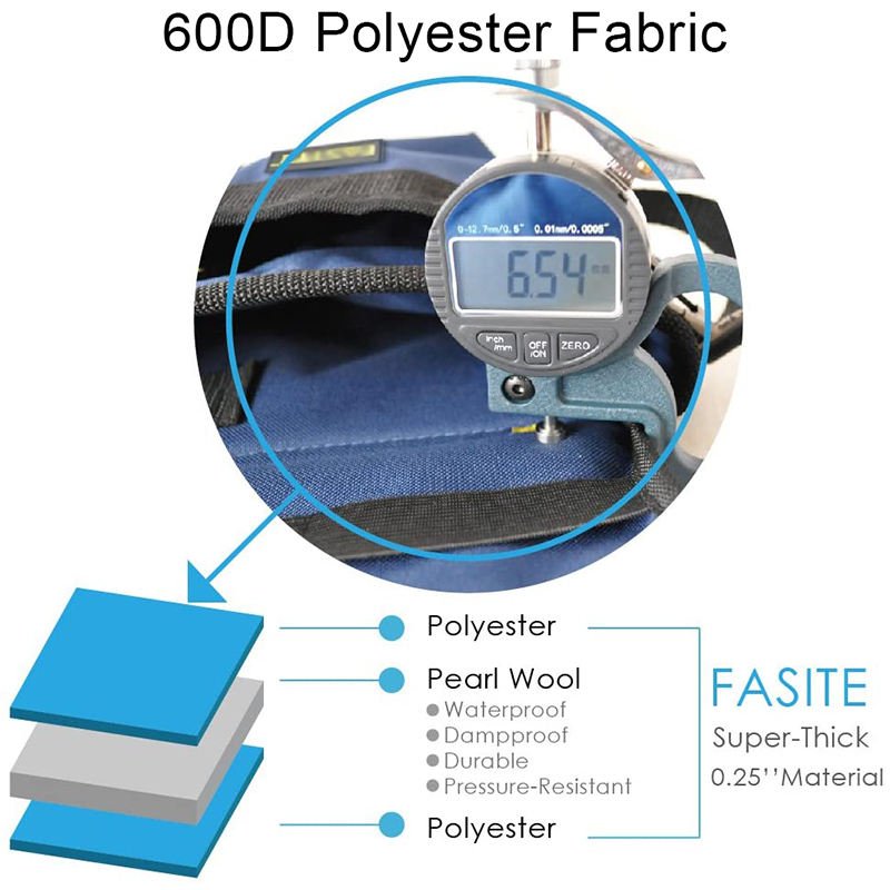 Take on tough jobsites with durable 1680 denier fabric and dirt-repellant tarpaulin.