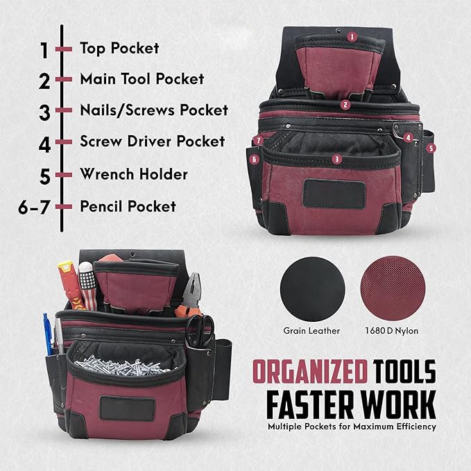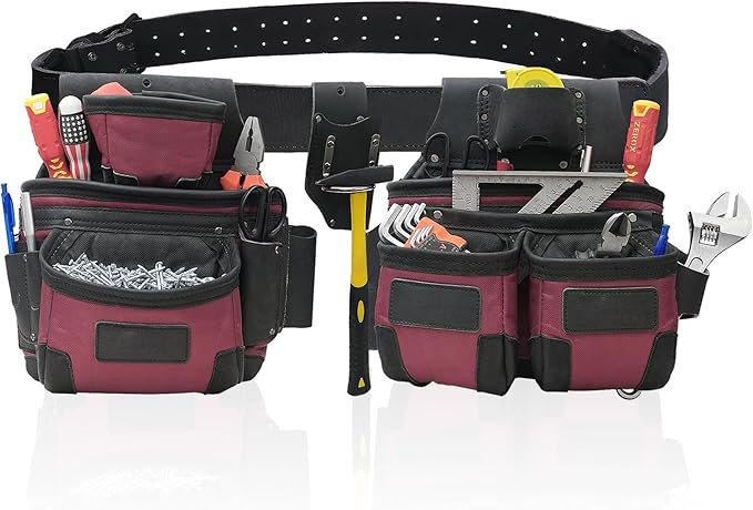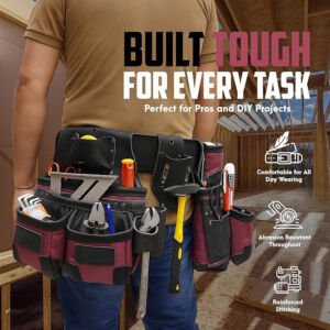 Premium Heavy Duty Grain Leather & Nylon Tool Belt | Carpenter Tool Pouch for Handyman | Leather Tool Pouch | Tool Belts for Construction | Framers | Electrician